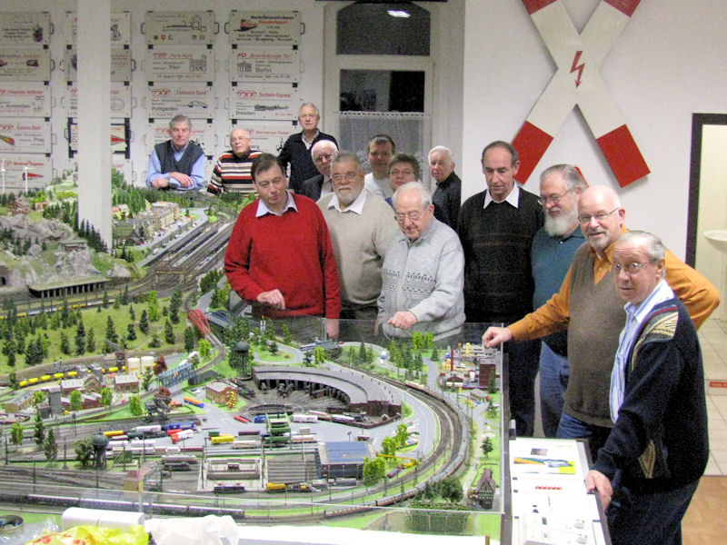 LUTHE (schö). In einer vereinsinternen Zusammenkunft feierten die Mitglieder des Modell-Eisenbahn-Clubs Luthe e.V. jetzt in ihrem Clubheim im Dorfgemeinschaftshaus Luthe ihr 25-jähriges Vereinsjubiläum. Der Vorsitzende des MEC Luthe, Michael Schulze, ließ in einem kleinen Vortrag die 25 vergangenen Jahre noch einmal Revue passieren und dankte allen Mitgliedern für ihre engagierte Club-Mitarbeit. Der im Januar 1984 von sieben Modelleisenbahnfans gegründete Verein hatte zunächst eine Bleibe im alten Schrankenwärterhaus "Am Frachtweg 6" an der Schranke Wunstorf-Blumenauer (Eisenbahnstrecke Wunstorf-Bremen) gefunden. Die Wohnung des ehemaligen Schrankenwärters war frei geworden und konnte in aufwändiger Eigenarbeit so umgebaut werden, dass ca. 20 qm Fläche für die künftige Spur N 1:160-Anlage zur Verfügung stand. Nach nur drei Jahren wurde das bundesbahneigene Gebäude verkauft und die bestehende Anlage musste abgebaut werden, weil die notwendigen Mittel für den Erwerb nicht zur Verfügung standen. Mit Unterstützung der Stadtverwaltung Wunstorf fand der noch junge Club neue Räumlichkeiten im ehemaligen Schul- und Verwaltungsgebäude am Kirchplatz in Luthe. Auch hier wurden einige Baumaßnahmen erforderlich, die die Mitglieder für die Nutzung eines Modell-Eisenbahn-Clubs in Eigenarbeit durchführten. Im September 1989 wurden die neuen Räume eingeweiht und mit dem Aufbau einer Anlage nach neuem Konzept begonnen. Haben Grund zum Feiern: Die Mitglieder des MEC Luthe e. V.. Ihr Verein wird 25 Jahre alt.