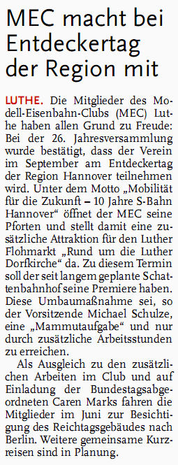 Vorheriger Beitrag: Leine-Zeitung Wunstorf vom 30.01.2009